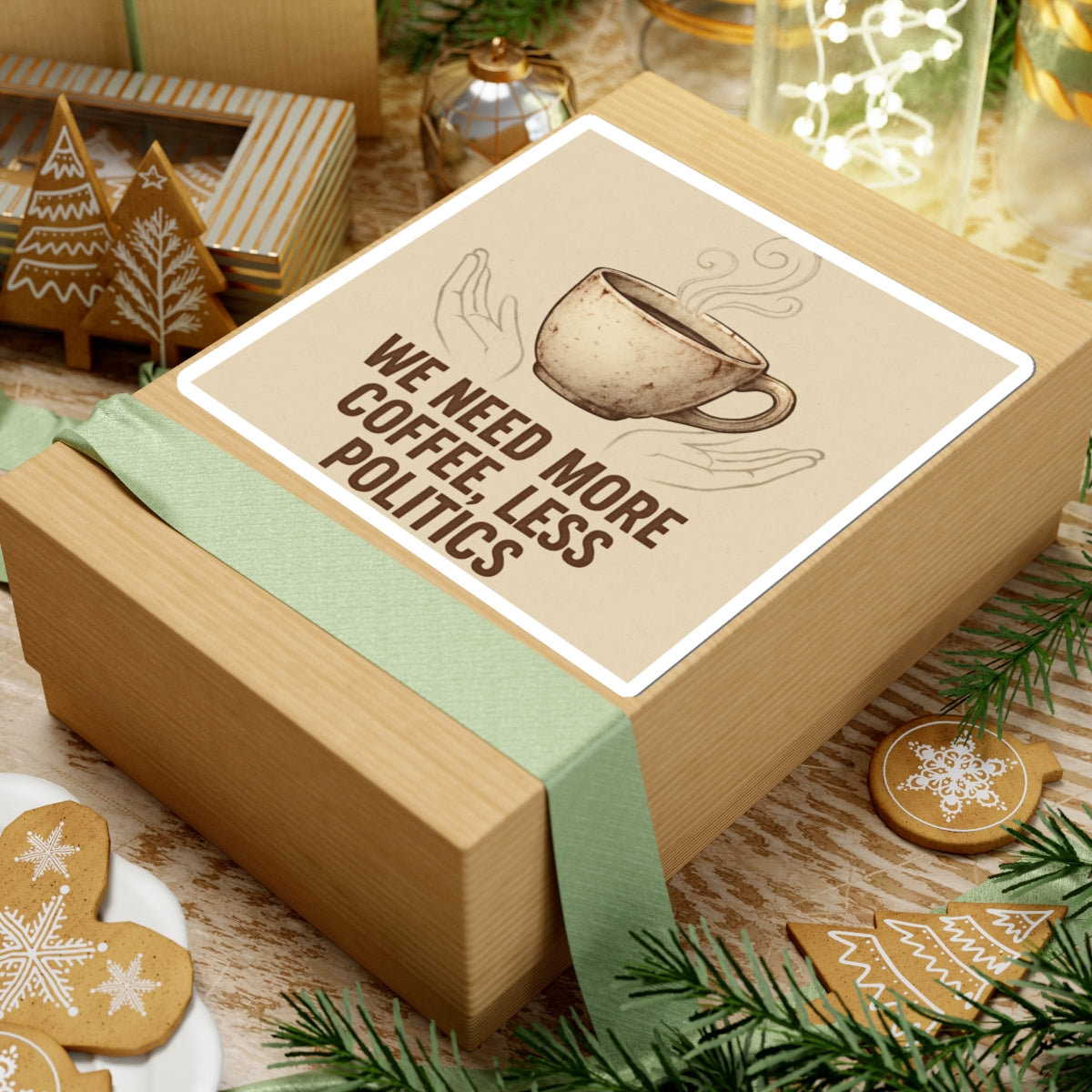 Coffee Sticker — "We Need More Coffee, Less Politics" Kiss-Cut Vinyl Decal