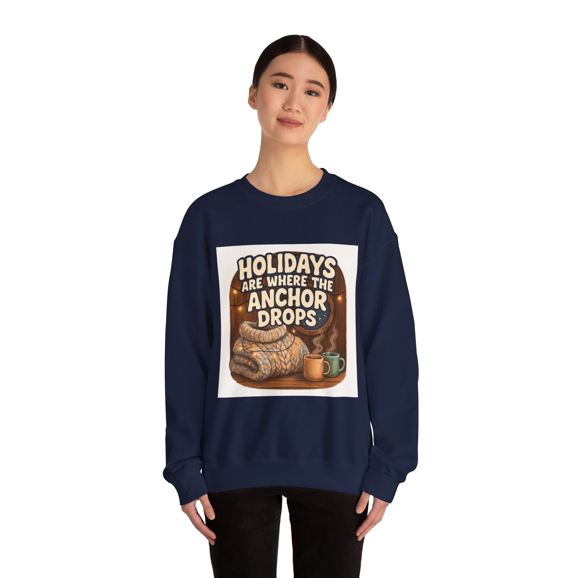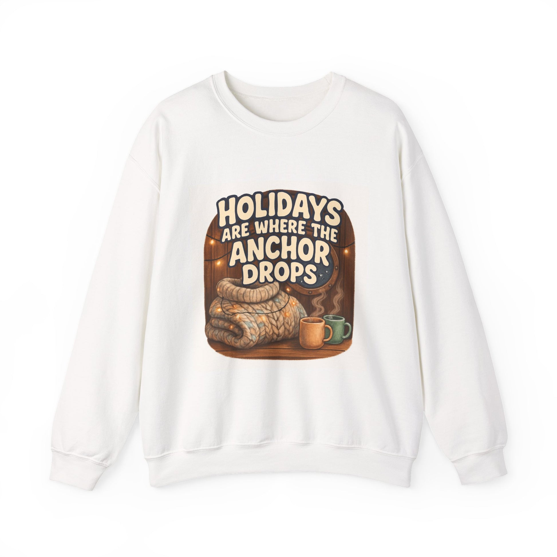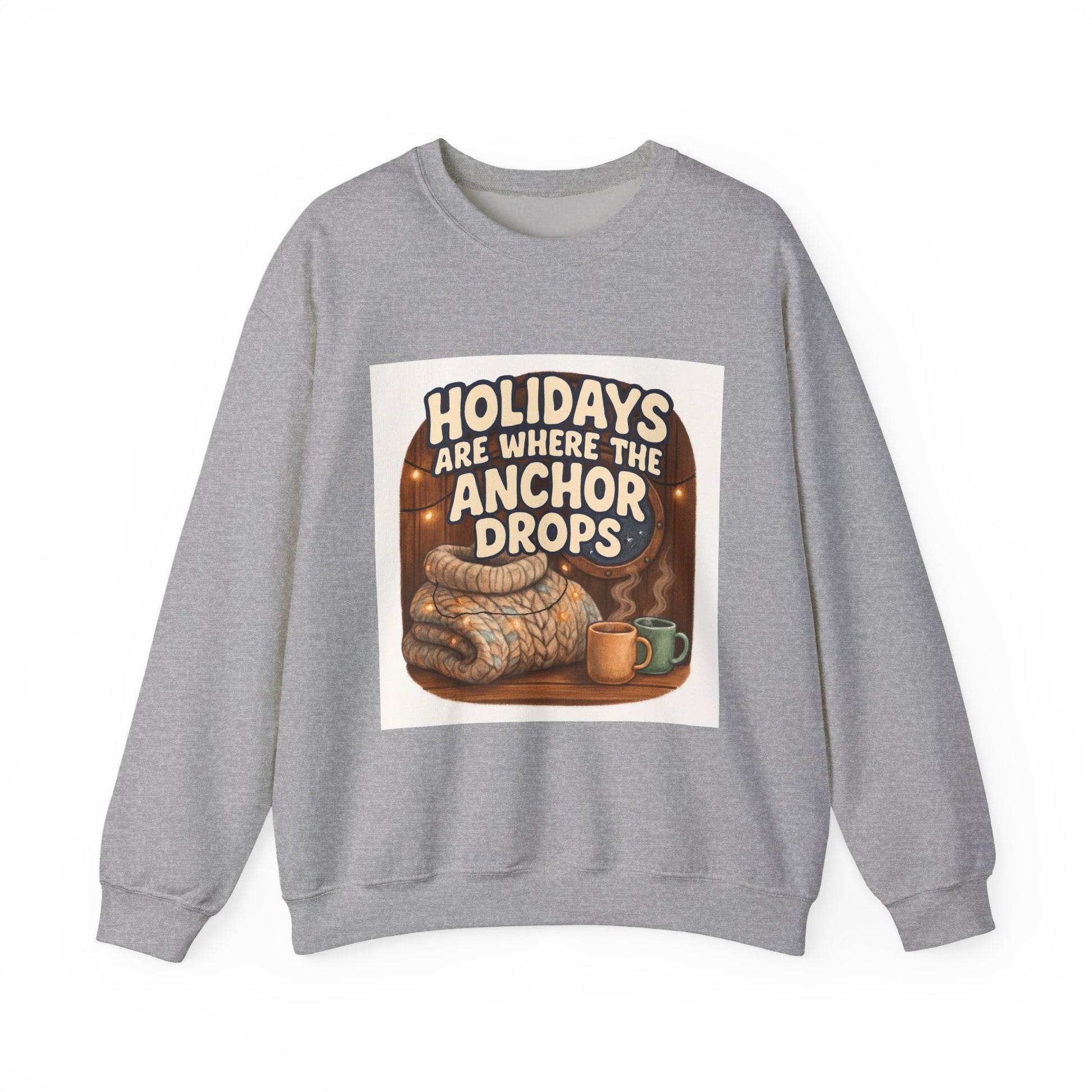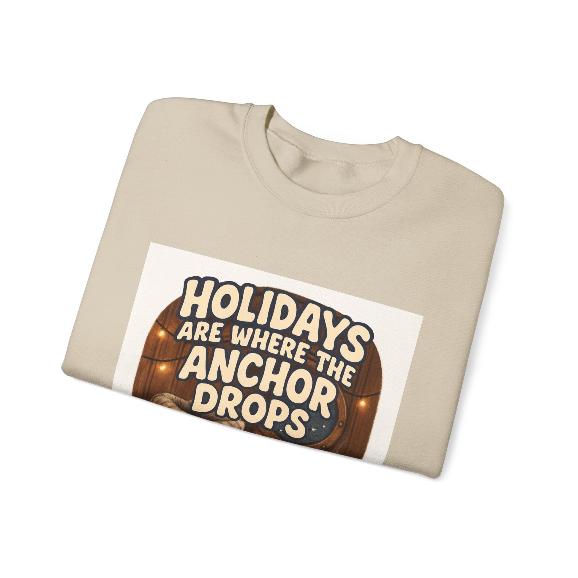 Crewneck Sweatshirt — "Holidays Are Where the Anchor Drops" Cozy Nautical Holiday Pullover