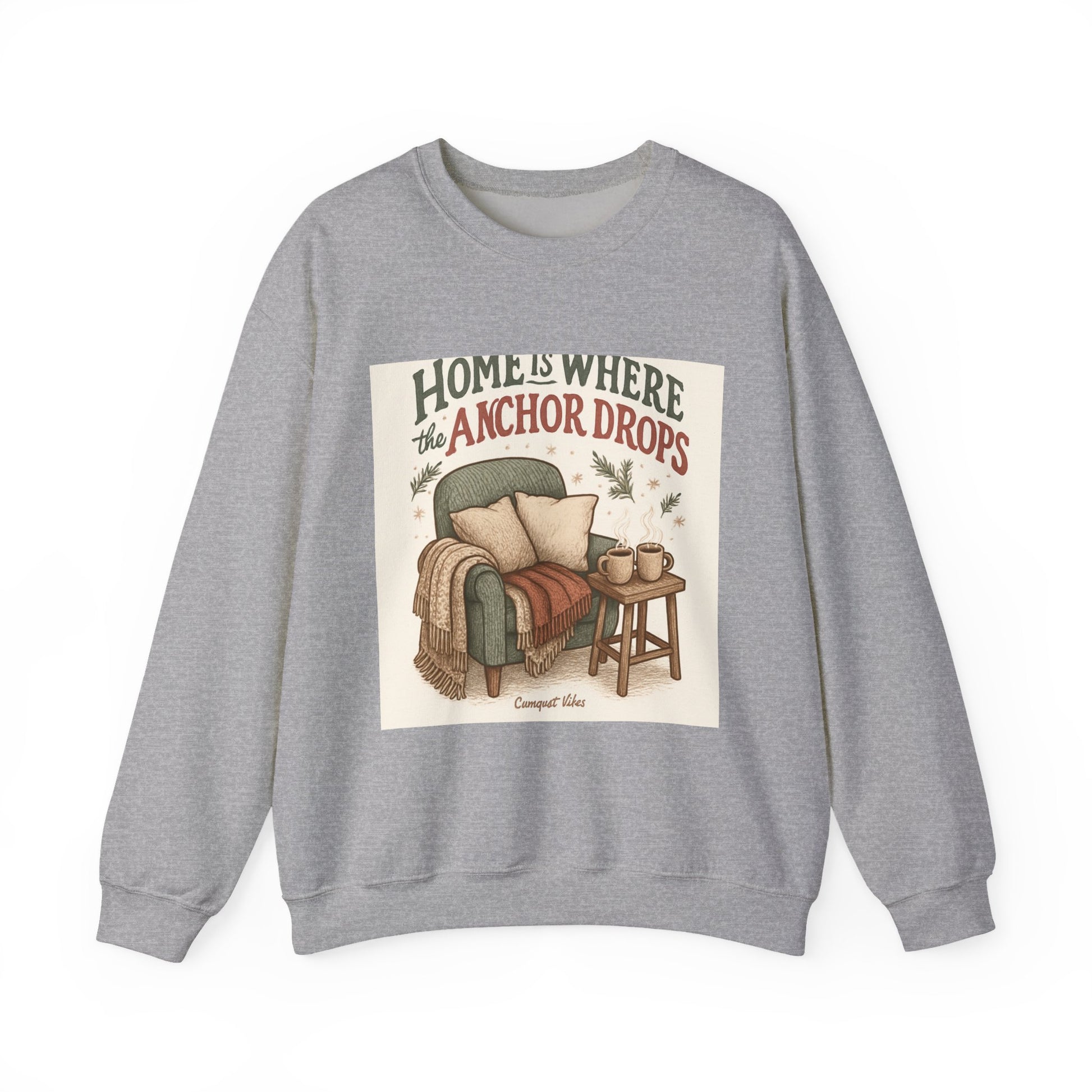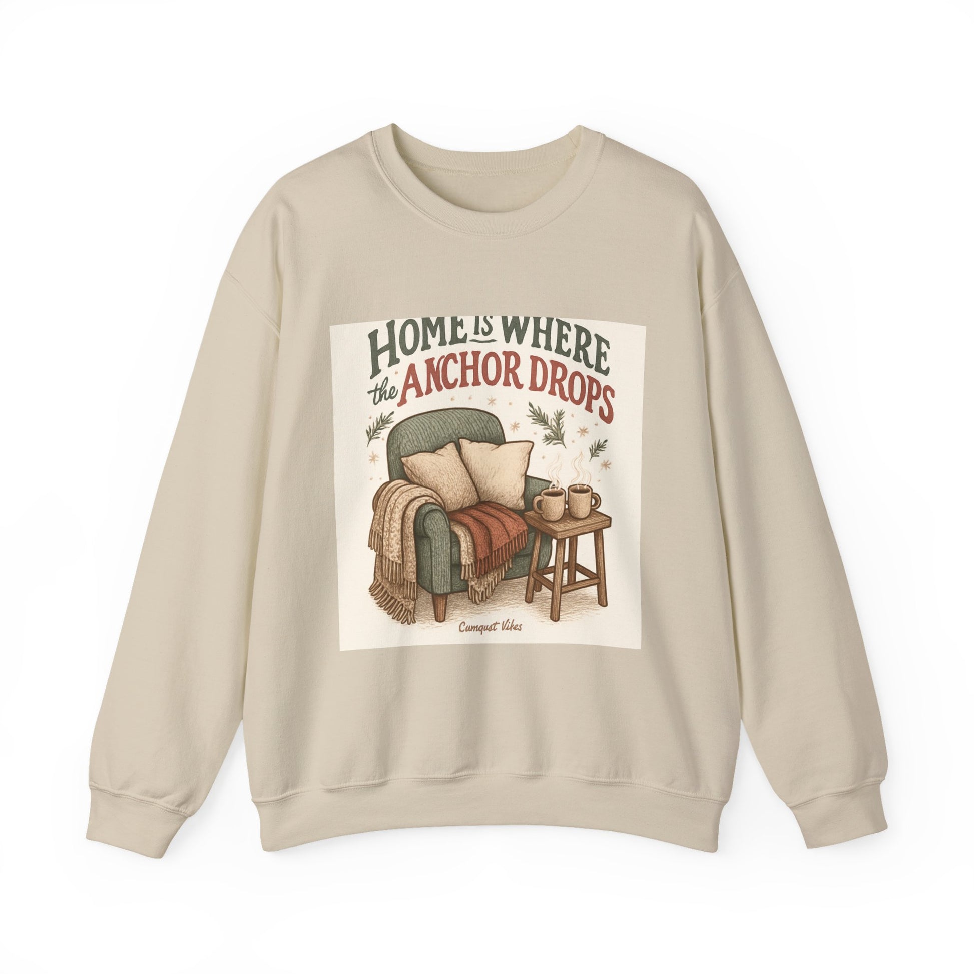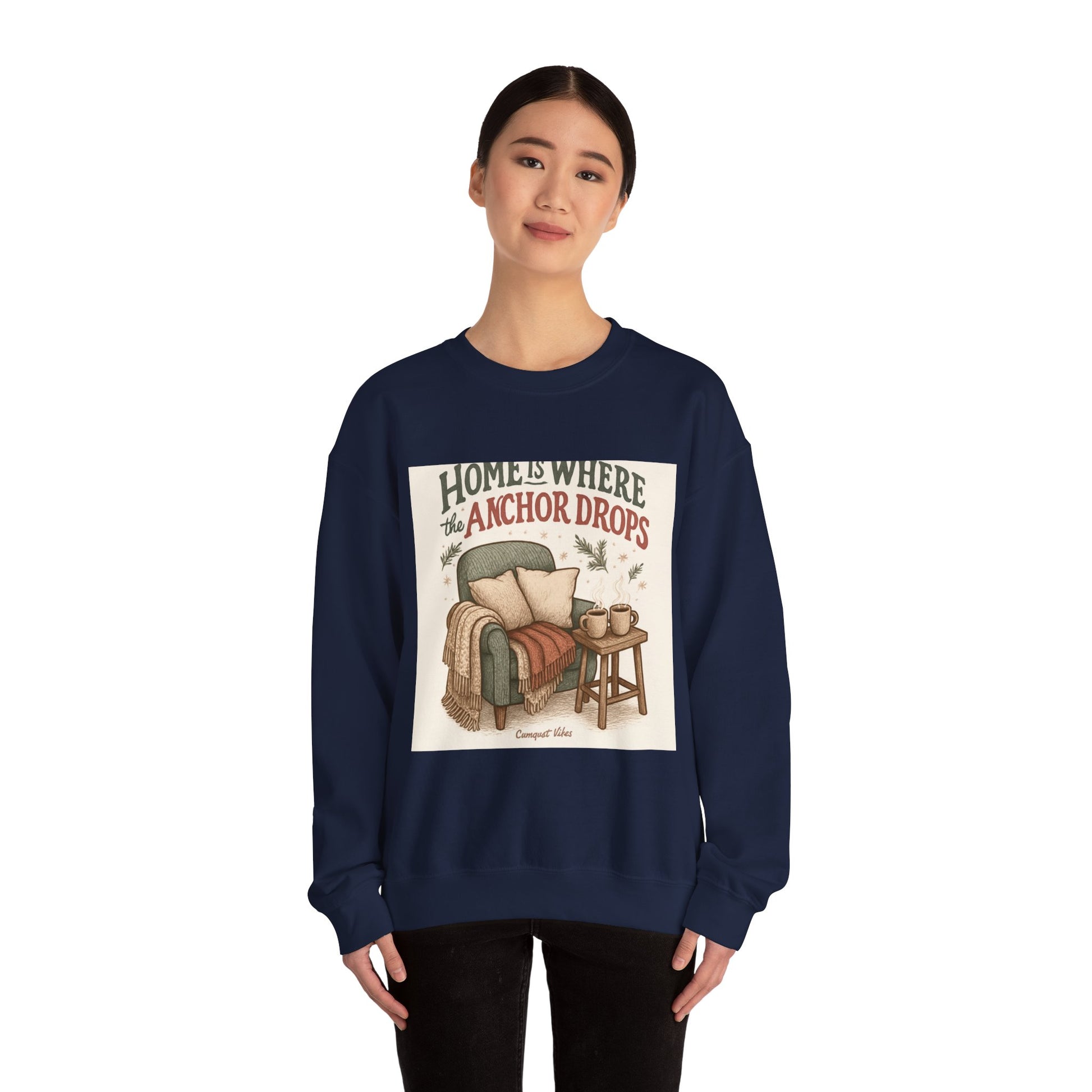 Crewneck Sweatshirt — "Home Is Where the Anchor Drops" Cozy Nautical Lounge Pullover