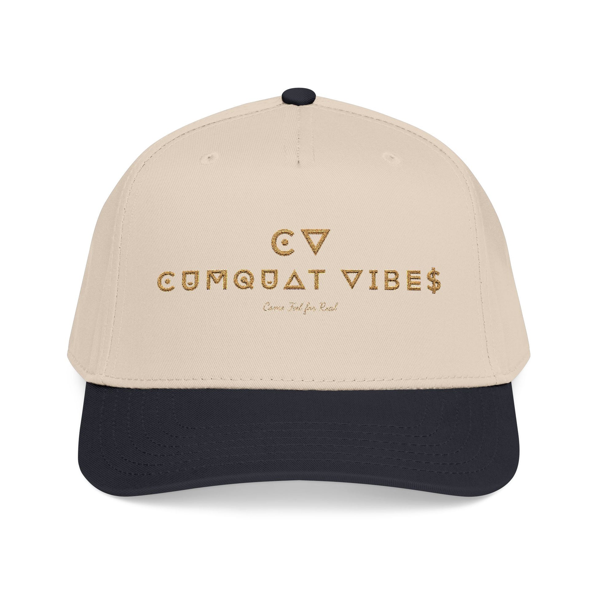 Soft-structured mid-profile cap embroidered with a playful "Cumquat Vibes" motif — an easy, everyday piece that carries a lighthearted energy. The seamless front panel keeps the design clean and centered, while the matching fabric undervisor and sweatband add a subtle, finished look. Built for grown-up wearers, the cap’s durable snap closure and breathable eyelets make it comfortable through long days outdoors or relaxed weekend strolls. Each purchase supports a hopeful message — a little reminder that dreams keep moving forward.